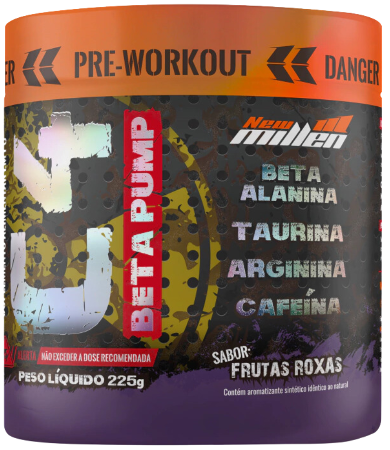 FÓRMULA BETA PUMP: [Beta - alanina, Taurina, Arginina, Cafeína, Extrato seco da semente de uva em pó (proantocianidinas de semente de uva)], Bisglicinato de zinco, Isomaltulose (Palatinose™) , cloridrato de piridoxina (vitamina B6), Acidulante ácido cítrico, aromatizante idêntico ao natural, antiumectante dióxido de sílicio, espessante goma xantana, edulcorante sucralose, corantes artificiais: vermelho bordeaux e azul brilhante. Colorido Artificialmente.NÃO CONTÉM GLÚTEN ALÉRGICOS: PODE CONTER LEITE, OVO, SOJA E AMENDOIM.